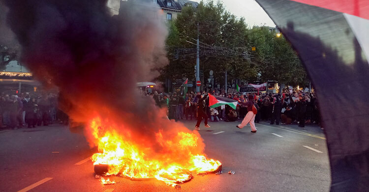 গাজাগামী নৌবহরে ইসরায়েলি বাধার প্রতিবাদে ইউরোপে সড়ক অবরোধ-ভাঙচুর বৃহস্পতিবার (২ অক্টোবর) সুইজারল্যান্ডের জেনেভায় সড়কে টায়ার জ্বালিয়ে ফিলিস্তিনিদের প্রতি সংহতি প্রকাশ ও ইসরায়েলি সেনাবাহিনী কর্তৃক গ্লোবাল সুমুদ ফ্লোটিলায় বাধাদানের নিন্দা জানান বিক্ষোভকারীরা ত্রাণ নিয়ে গাজা অভিমুখী নৌবহর গ্লোবাল সুমুদ ফ্লোটিলাতে ইসরায়েলি বাহিনীর অভিযান ও চার শতাধিক অংশগ্রহণণকারীকে আটকের ঘটনায় উত্তাল হয়ে উঠেছে ইউরোপ। বৃহস্পতিবার (২ অক্টোবর) ইউরোপের বিভিন্ন দেশে বিক্ষোভকারীরা সড়ক অবরোধ করার পাশাপাশি দোকানপাট ও রেস্তোরাঁ ভাঙচুর করেন।