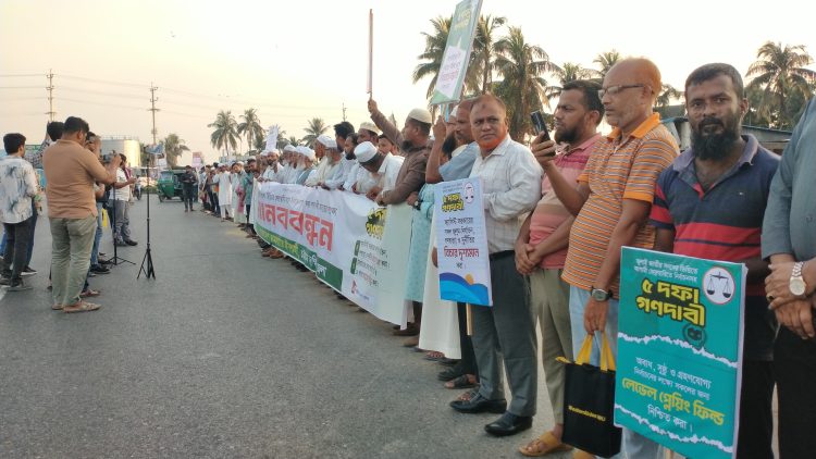 দক্ষিণ জেলা জামায়াতে ইসলামীর আয়োজনে মানববন্ধনে সভাপতিত্ব করেন জেলা আমীর এডভোকেট আনোয়ারুল আলম চৌধূরী।